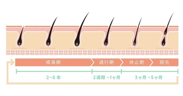- 成長期の毛に当たったものは、照射後1〜2週間ほどかけて自然に抜け落ちることが多い